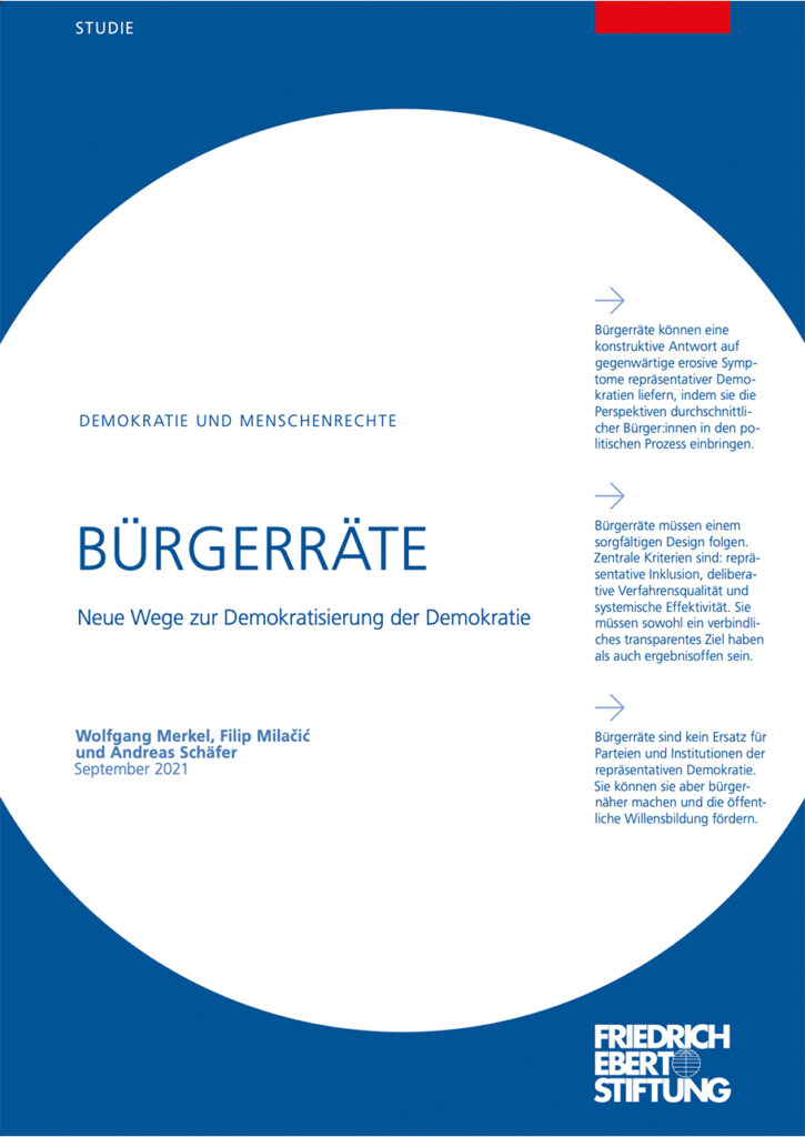 Für eine Publikation, die sich insbesondere zum Ziel gesetzt hat, Theorie und Praxis der Bürgerräte weiter zusammenzuführen sowie der kommunalen Praxis eine Hilfe zu sein, darf natürlich ein drittes starkes Praxiskapitel, „Aus der kommunalen Praxis – Von Vorreitern und ganz individuellen Bürgerräten“, nicht fehlen. Auch auf Bundes- und Länderebene haben bereits erfolgreich Bürgerräte stattgefunden. Mit diesen Entwicklungen beschäftigt sich das vierte Kapitel des Buches: „Der Bürgerrat macht Schule – interkommunal, in den Ländern und im Bund“.